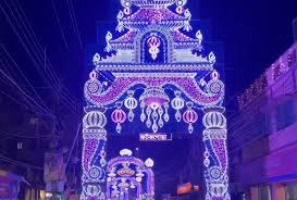 festivals in the region. Established by the Mitra family, this bonedi bari (aristocratic house) puja dates back to the 18th century and has grown into a cultural landmark known for its exquisite idols, traditional rituals, and especially its dazzling lighting displays that transform the city streets during the festive season.