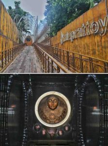 Many pandals ground their narratives in mythology, social issues, or folklore. Tala Prattoy’s “Bihin”, however, dared to plunge into the philosophical. By presenting Durga as a symbol of formless majesty, the installation invited viewers to contemplate the void, the essence of existence beyond identity, and the silence that precedes creation. It echoed themes of non-duality and invoked spiritual questioning, asking devotees not to worship an icon, but to explore the infinite within themselves.